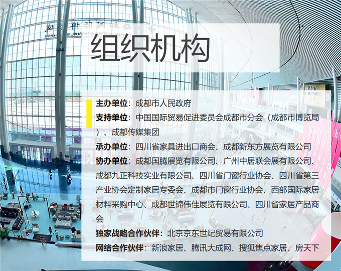 重点参展企业:原野实业、泰强化工、德华兔宝宝、雅轩五金、宏诚世纪纺织、大宝化工、品尚品、静兴艺通、同德制线、东岳化工、利川五金、雅胜家具材料、和盈国际、博天五金、蜀工粘合剂、乐源新材料、黄河五金、上锦木业、新实惠、盛佰威家居、众和木业、安利材料、大唯科技、北德化工。