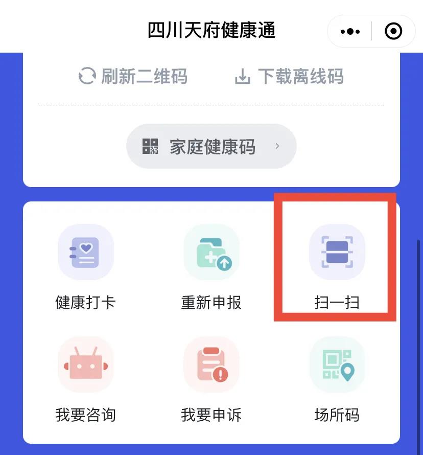 2.进入四川天府健康通,小程序打开选择“扫一扫”