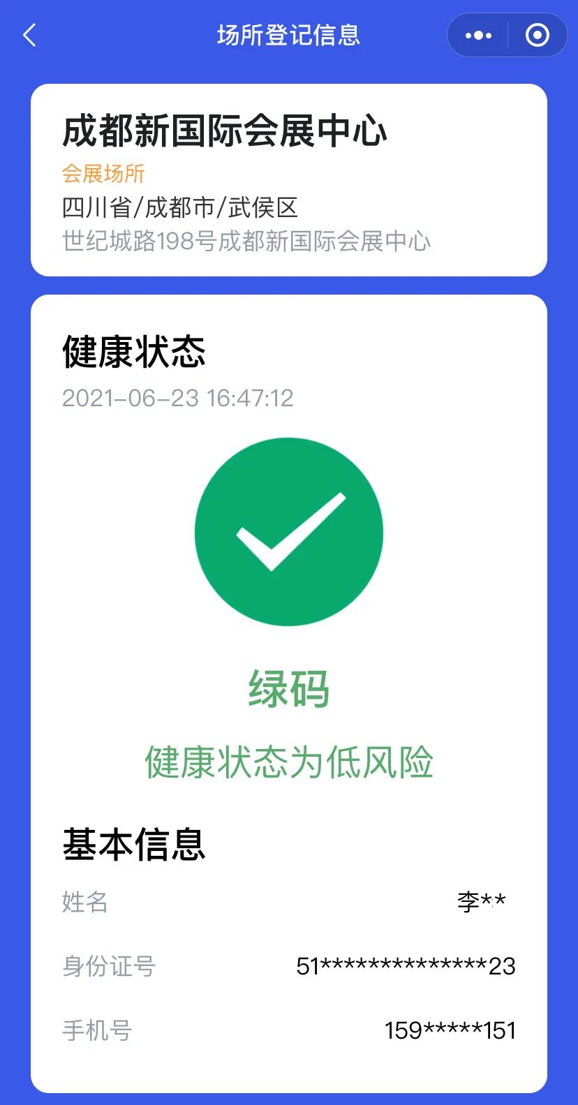 打开微信小程序天府健康通,扫描世纪城新会展中心的“场所码”
