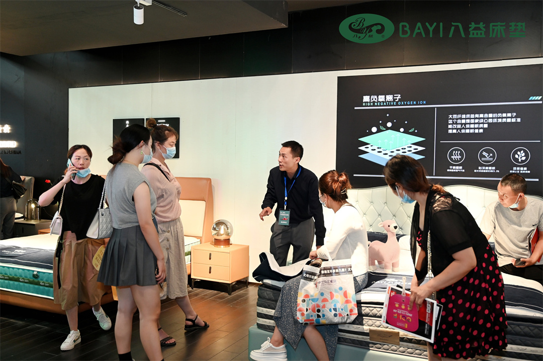 八益床垫作为成都本土老字号品牌,一直致力于为国人提供健康,舒适,环保的睡眠的体验,在这次成都展会上,八益床垫融合现代科技创新与匠心工艺,推出的大豆蛋白纤维床垫,一经亮相,就引起了现场观众和经销商的极大兴趣。