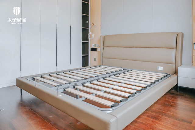 分段设计的靠背和真皮的床头