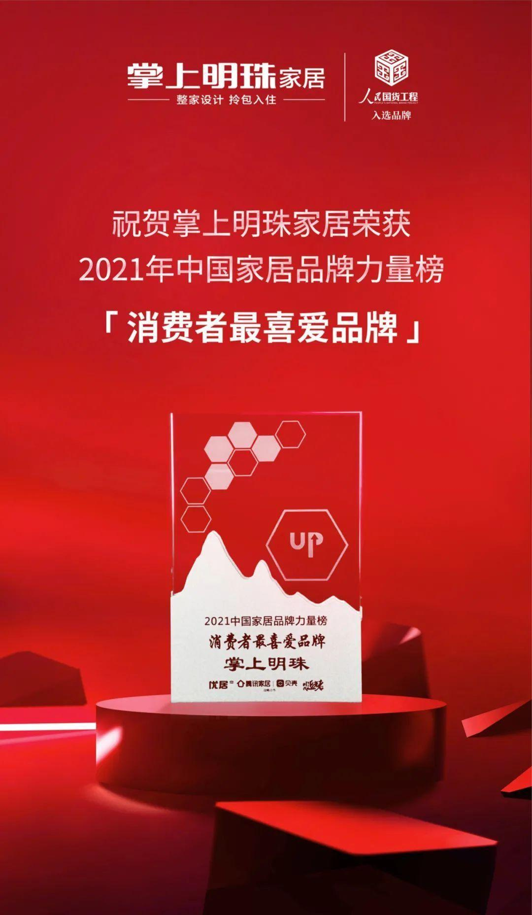 与此同时,「时代追光者—2021年度中国家居品牌力量榜」也在本次峰会荣耀揭晓,掌上明珠家居斩获「消费者最喜爱品牌」这一奖项。