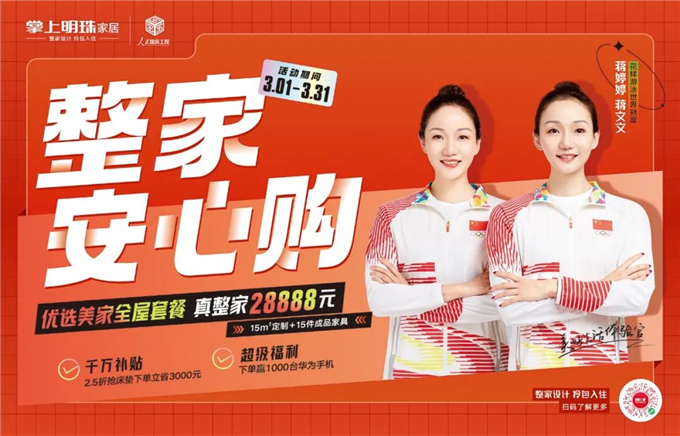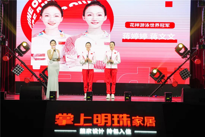 随着现场倒数声响起,本次发布会也迎来了重磅时刻。在花样游泳世界冠军蒋文文、蒋婷婷与掌上明珠家居总经理王占强等人的共同推动下,「真整家颜质套餐」的价格缓缓揭幕。