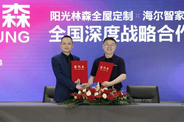 5月28日,阳光林森全屋定制 X 海尔智家全国深度战略合作仪式在阳光林森总部举行。