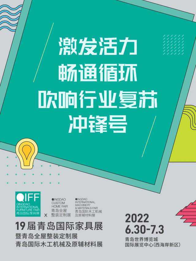 复苏的号角已然吹响,青岛国际家具展携全体参展商,以时不我待的紧迫感主动出击,向下半年市场争夺战发起总攻。2022年6月30日至7月3日,全年承上启下之际,第19届青岛国际家具展将盛大呈现,我们相约西海岸,共赴一场期待已久的展会盛宴,共同为家具行业的恢复发展按下启动键、加速键!