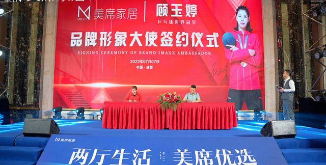 “国货当潮 冠军品质”,美席家居在此次夏季订货会上,在众多经销商伙伴的见证下,正式签约第一届青奥会女单冠军、第十二届全运会女团冠军等荣获37次世界冠军的乒乓球运动员顾玉婷为品牌形象代言人。