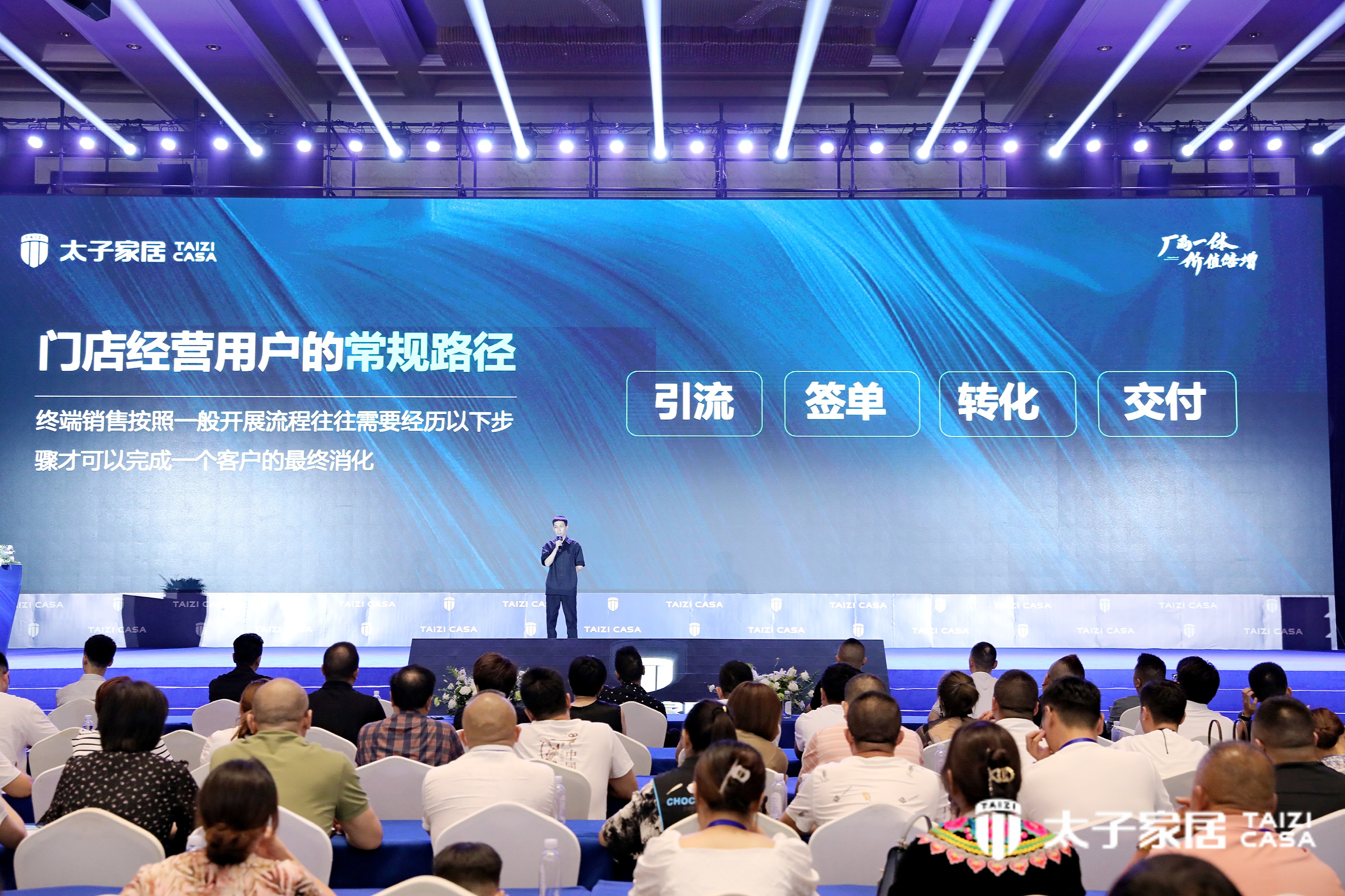 面对诸多市场业态带来的新需求,引流获客从单一化转向多元化。随后,太子家居李董事现场分享了公司未来一系列营销赋能举措,营销工作重心从「渠道管理」转向「零售赋能」。除了常规擅长的引流方式外,互联网营销、互联网引流已逐渐地成为了非常重要的门店引流的手段。