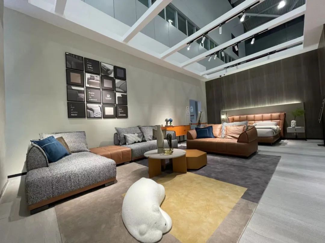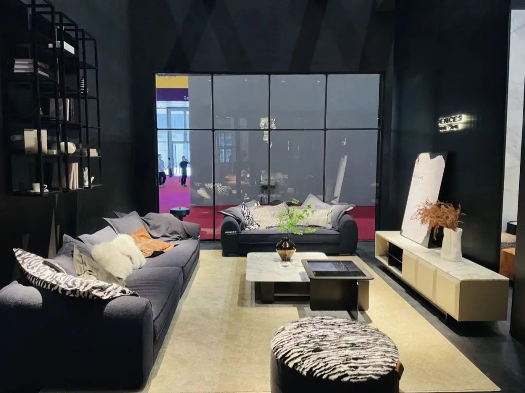 本届展会,洛滨家居产品独具当下潮流的设计,运用了更为大胆的色彩搭配,多种高端科技面料的使用,使产品更具功能性,面料的多重工艺处理,具有抗污、防尘、耐腐蚀、抗氧化、亲肤柔软等众多亮点,恰恰符合了后疫情时代消费者对健康居家生活的刚性需求!更具设计感的产品搭配,也符合了当下年轻人对两厅家居产品在空间融入和房屋整体设计搭配上的苛刻要求!为年轻而来,洛滨家居有颜又有品!
