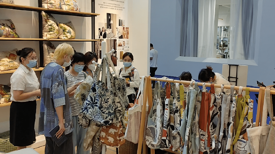 在La Belle Vie(贝拉丽舍)展馆7D08,首先映入眼帘的就是风格多样化的布艺包袋和家居收纳展台。从质朴纯粹的日式极简系列,到带有都市感花型,适合通勤的摩登系列,以及充满动植物元素的自然系列等,为简约雅致的展馆绘上生动活力一笔,在现场收获了许多年轻观众的追捧。