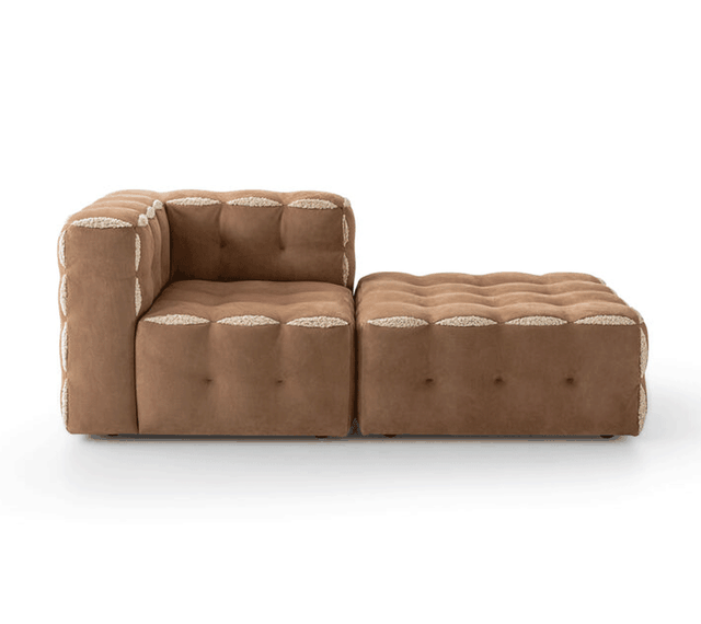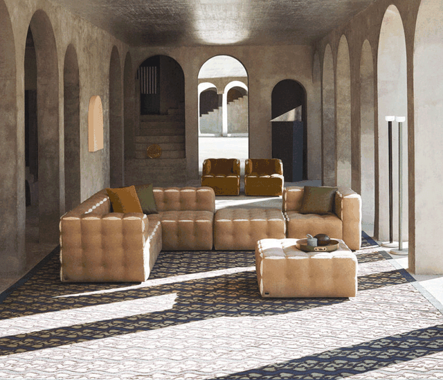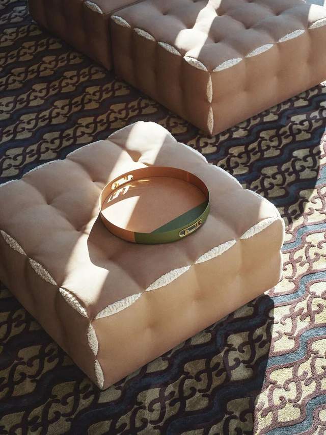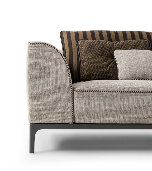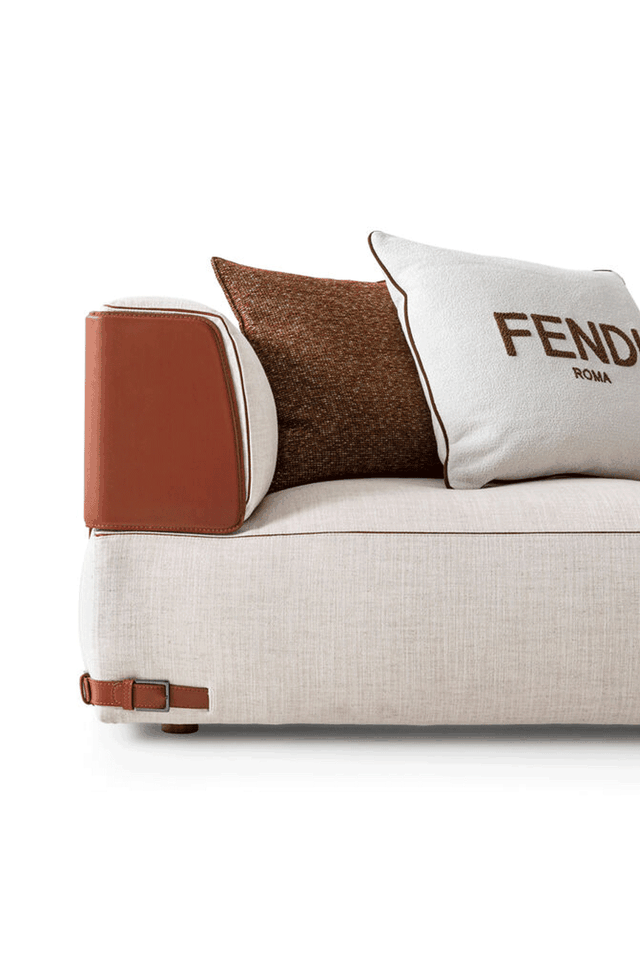 Fun模块化沙发,完美地表达了Fendi的传统手工艺。每件单品均采用织物或皮革饰面,带有侧开衩,可以瞥见填充物。