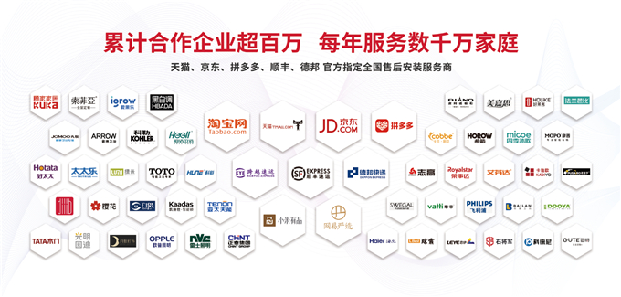 鲁班到家与多家知名企业建立了深度的战略合作。同时也是淘宝、天猫、京东、拼多多、顺丰、德邦、跨越速运全国指定安装服务平台。