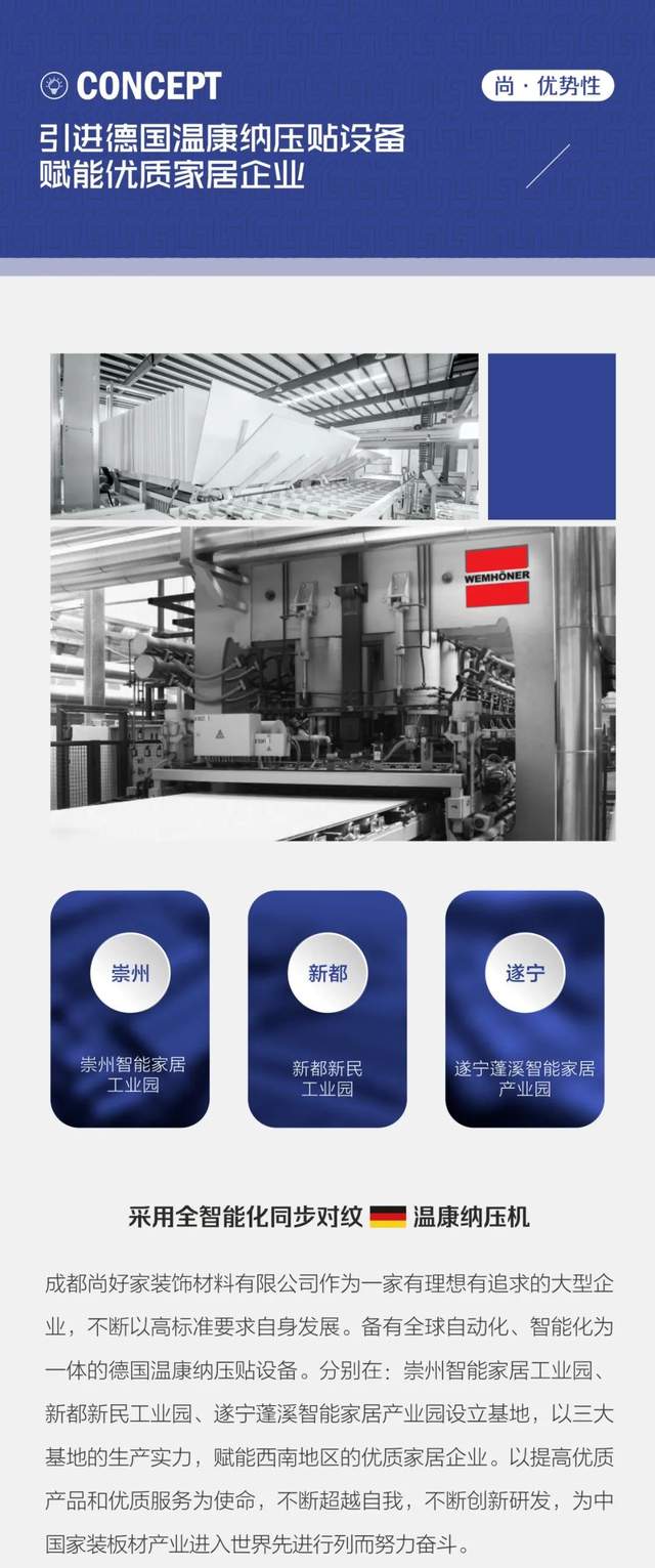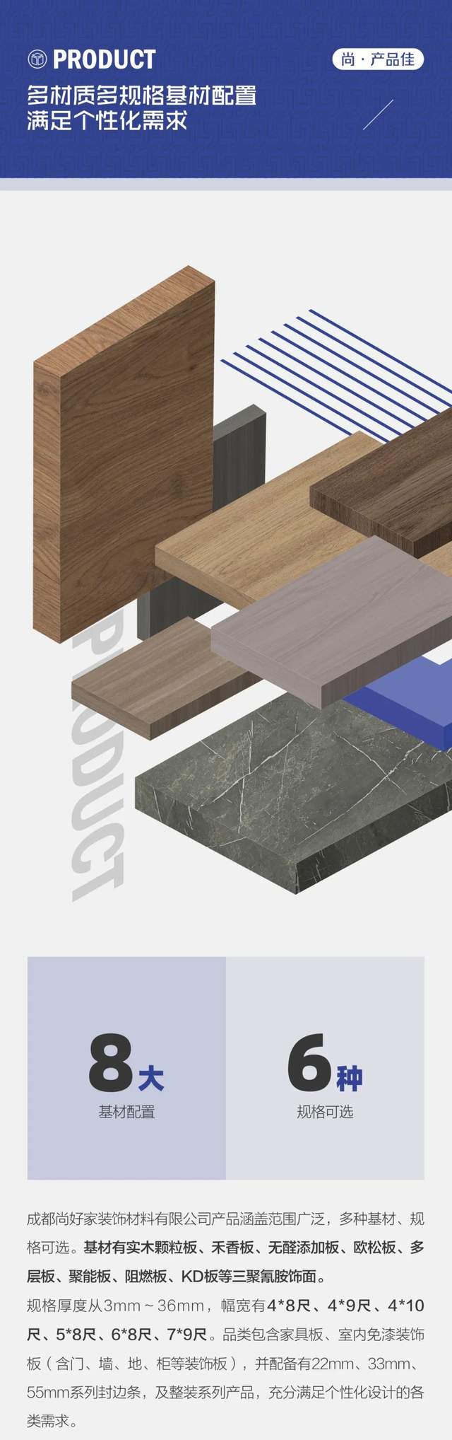 成都尚好家装饰材料有限公司成立于2007年10月,专注于加工、生产、销售三聚氰胺高端饰面板,让饰面板高颜值与高品质并存,为优质家居企业赋能。