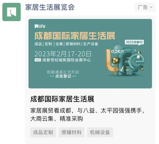 2023年2月17-20日,2023成都国际家居生活展(以下简称“展会”)将在成都世纪城新国际会展中心举行。 截至1月10日,全国各地专业观众线上报名已经突破5万人,预计到场观展将达到10万人次左右。