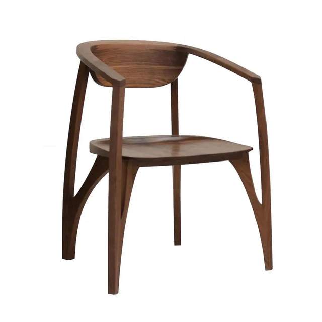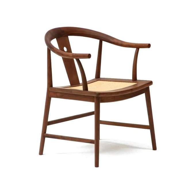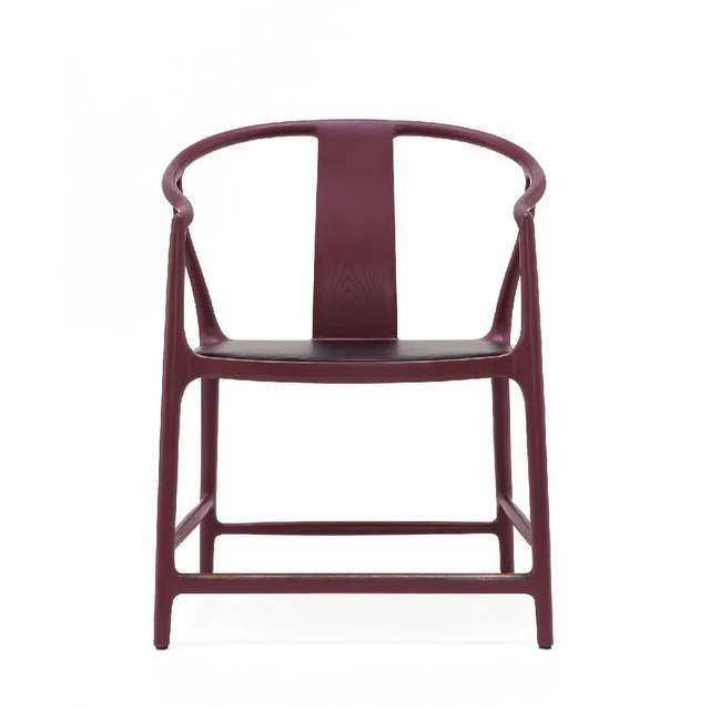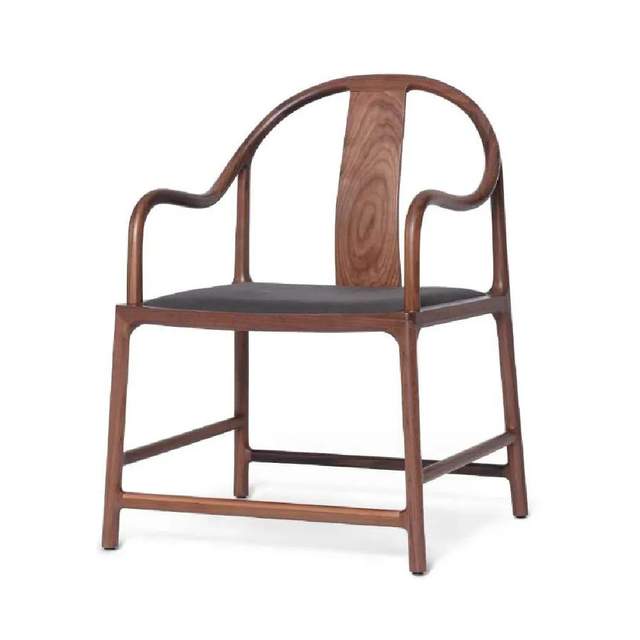 设计说明:“圈椅”和“南官帽椅”均为曲径和风系列大案和圆桌的配套椅子。古代的椅子讲究的是气,不是为了坐着舒服,而是追求一种姿态。未出阁的姑娘要做玫瑰椅,且只能坐椅子外侧的边。而设计师结合现代人们追求的既要有传统的美感还要有舒适度的体现,所以在体量上都有所更改,让体验者坐着比较柔软和舒适。