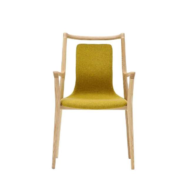 设计说明:“围椅”,感性中幸福,合而围之,舒筋骨。理性中静思,正坐抒怀,不久坐。扶手曲线、斜度,参考传统太师椅和现代人机工学,呈现出简约理性的舒适曲木造型;倾斜扶手给用户双臂提供平稳支撑,足够的支撑面积大大较少手臂的压力从而带来舒适感;完美的人机工学尺度,使得用户双臂得到充分的伸展,减缓肩部对肺部的压力,带来爽快的坐感体验,不禁深呼吸。