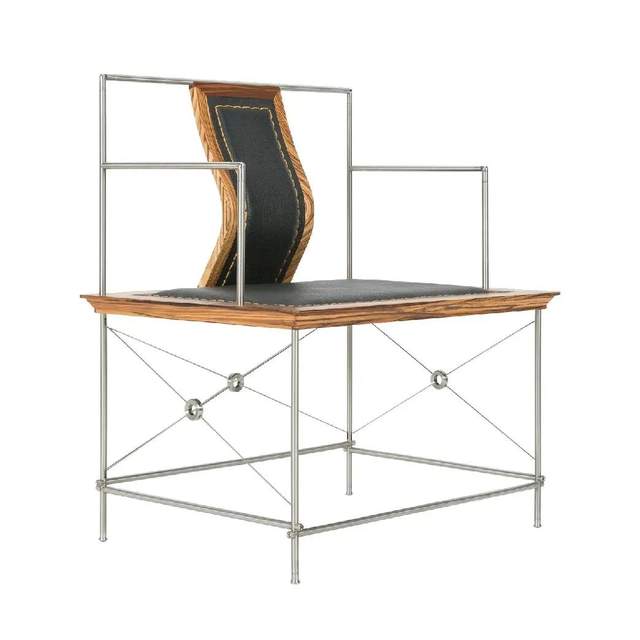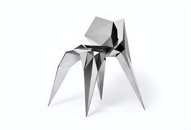 设计说明:一把具有分形美感的数字椅,每个三角形都有独特的形状和大小。这些三角形被精确地用手工固定制作,使用特殊的焊接技术,避免了肉眼可见的瑕疵。这是一把舒适和相对轻便的椅子。
