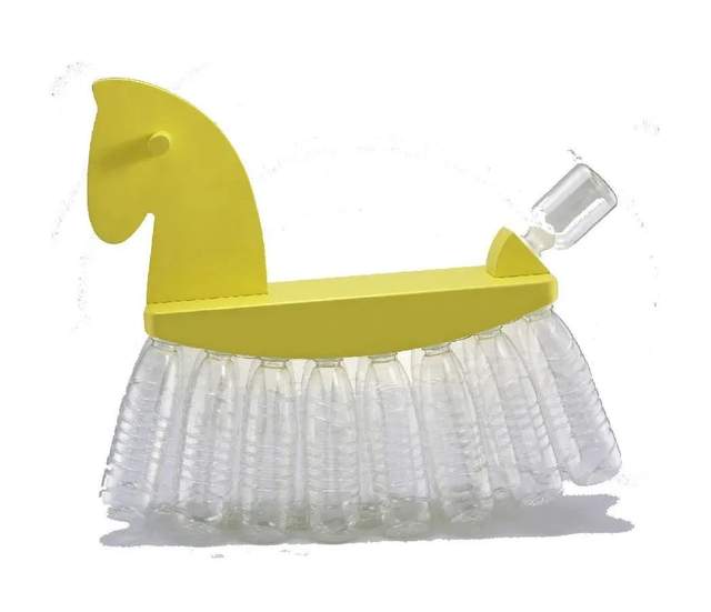 设计说明:它是由收集回来的废弃饮料瓶改造而成的摇摇木马,利用密集平均受力的原理,巧妙地将塑料瓶结合在木马上,重新赋予它们新的生命。木马的主要部分是细细打磨的实木,底部配有23个孔,可以通配市面上大部分的饮用水瓶。木马摇椅以充满童趣和幻想的方式让人们知道,原来花点心思,环保也可以很时尚,很有创意。