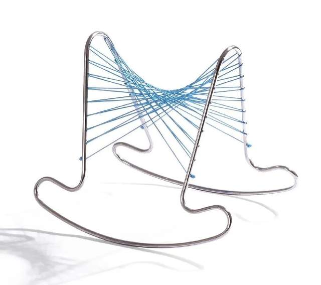 设计说明:设计师2016年的一次圣家族大教堂旅行,在地下室展厅的模型前灵感乍现,有了这个创意,为纪念这次灵感碰撞,取名 GODI。一个极简的金属支架承托,36条的直线构成优雅的弧形马背。有趣的是,它不仅继承了马鞍的样子,还成为木马界骑乘感受最接近马背的一匹马!是时候跨上马背,叫醒那个住在心里的孩子!