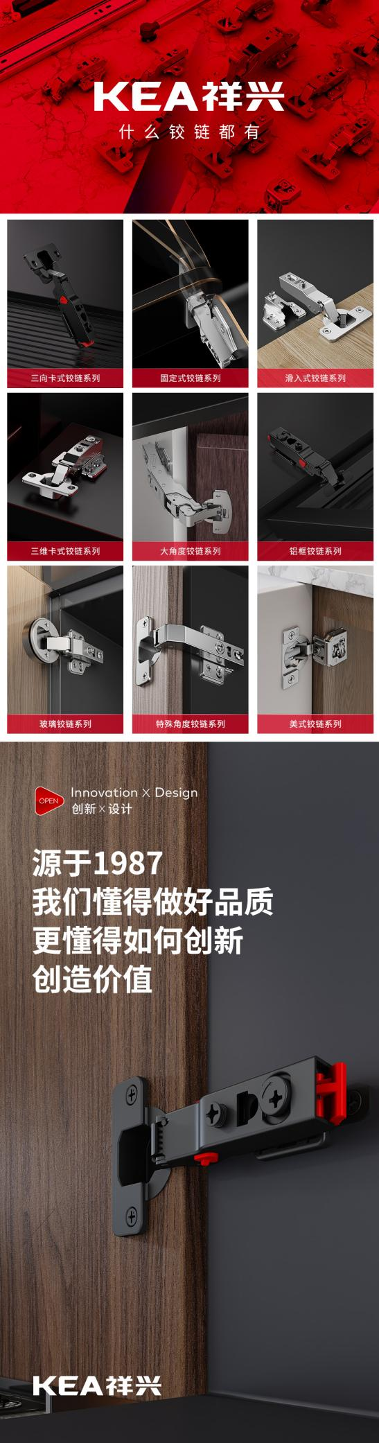 KEA祥兴,是一家集设计研发、生产、销售于一体的国际化五金企业,自主建立了一套“木门,铝框门,玻璃门,美式橱柜门,特殊角度门板”的基础五金系统。1987年成立至今,从小型工坊到生产面积达30000多平方米的现代化生产基地。KEA祥兴经过多年布局,开启了品牌全球化、多元化发展的腾飞之路。产品凭极致的技术原创与高品质的竞争力,畅销全球多个国家及地区,营销网络触及全球,并与多家业内知名品牌达成战略合作。2022年被评定为“国家高新技术企业”,盛誉之中,KEA祥兴受到了社会各界的高度认可,也成为企业持续发展的动力来源。