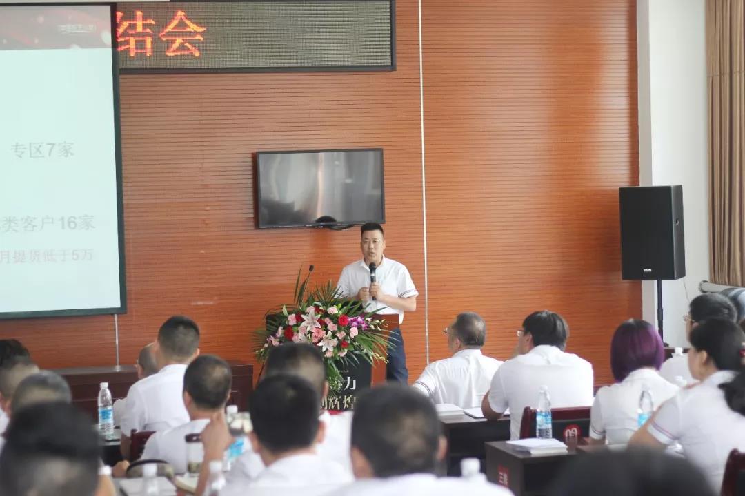 帝标集团营销中心副总经理郑勇从各区域任务完成情况,产品各系列销售占比,店面整改情况,建店情况,市场营销活动等方面对2018年上半年工作进行总结,并汇报下半年工作规划。