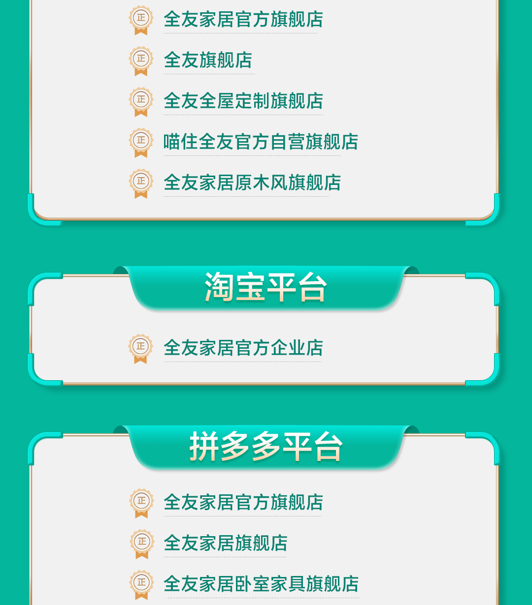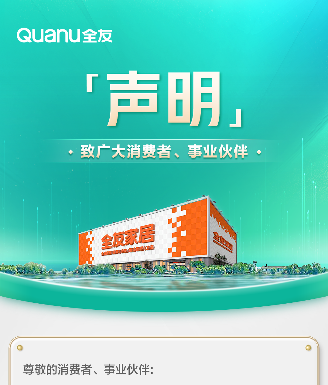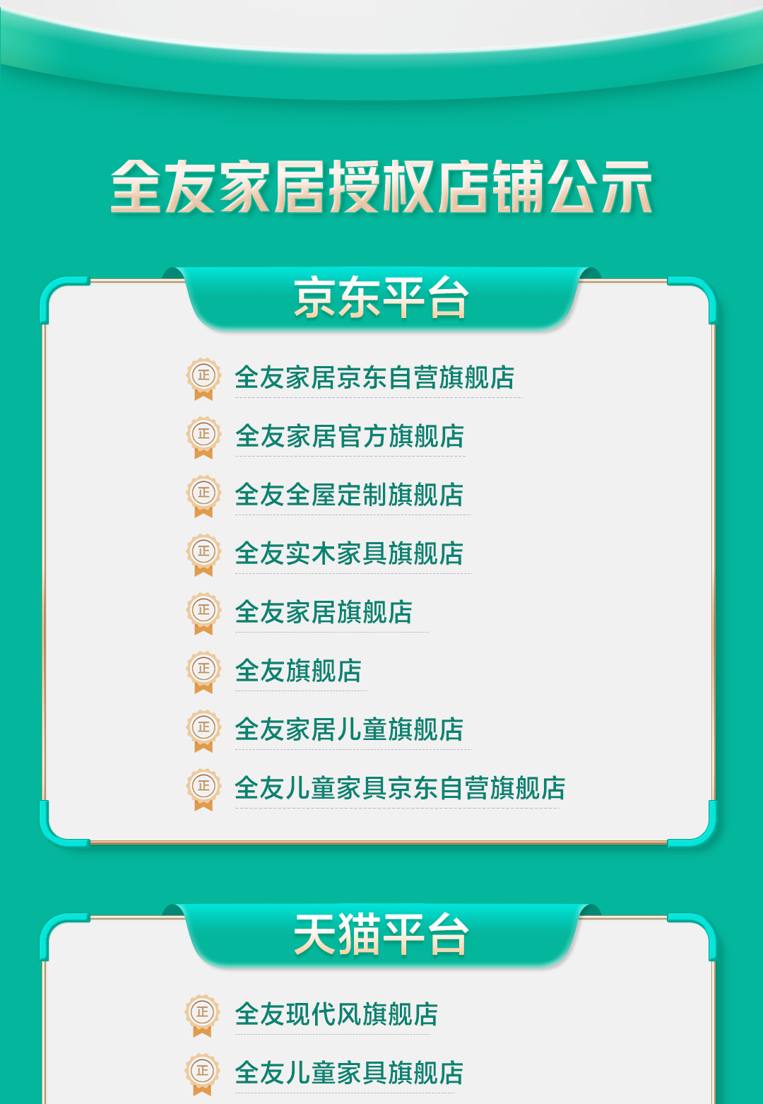 为保护消费者权益,免受非正规产品侵扰,全友家居将天猫、淘宝、京东、拼多多平台的授权门店信息予以公示。以下为声明原文: