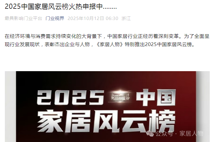 目前,榜单申报仍在进行中、、、。在变革与机遇交织的2025年,这场榜单评选不仅将记录家居业的转型足迹,更将为行业筛选出兼具实干精神与创新能力的标杆力量,为市场提供清晰的价值参照。