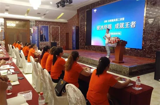 在《让店面更优秀》里,陈华祥先生先用(如何解决销售的难题)(完善的店面运营)(从坐商到行商)三部曲轻松让学员们身体力行的感受米斐“会唱歌的好寝具”,让终端销售变得简单,让店面可持续运营,通过案例生动分析轻松传授客户蓄水、引流系统以及多方位多维度的营销推广策略,精彩的分享迎来学员们阵阵的喝彩。