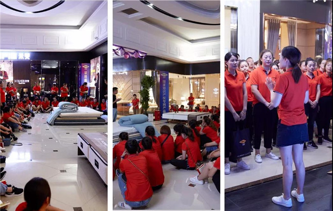 各小组纷纷在睡眠中心对着产品进行实战演练,相互扮演顾客与店长上演终端销售大戏。成为一名精英服务人员没有捷径,唯一的途径就是专业导师的口传心授与个人的反复模拟演练。
