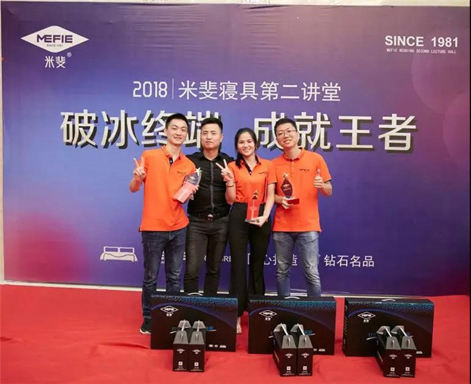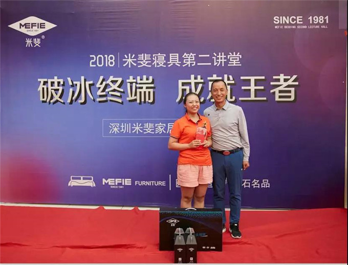 董事长谭英荣先生,亲自给在此次培训会105位新加盟店长成绩最优者颁奖,并授予2018年“米斐钻石睡眠顾问“称号!
