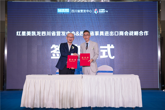 在此次战略发布会上,红星美凯龙四川省营发中心总经理张勤与四川省家具进出口商会秘书长荣煜伟签署战略合作协议,此次的合作不是简单的招商合作,而是四川家具品牌以大规模抱团的形式整体进驻红星美凯龙,商场、商家、商会三股力量共同打造一个四川家具全新的平台“四川家具精品馆”!