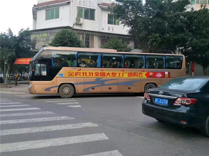 上午9点30分左右,来自6个不同地区的消费者乘坐厂购大巴车陆续抵达金虎家居总部。