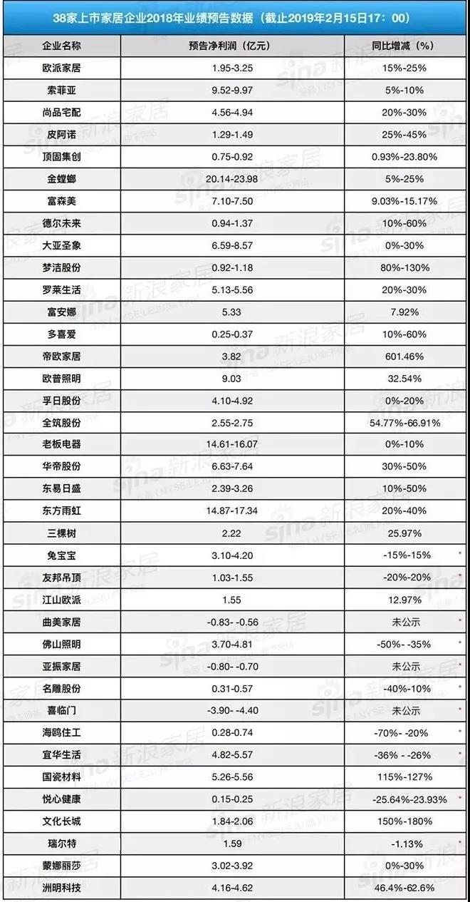 截止至2月17日, 38家上市家居企业发布了其2018年业绩预告。经统计发现,共计27家业绩预计同比增长,比例达71.05%,8家预计同比下降,只有3家企业预计亏损。