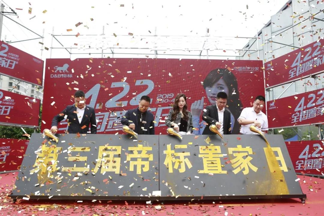 接着,金莎与营销中心总经理雷驰、营销中心副总经理郑勇、营销中心市场品牌部总监刘文军、营销一部总监青文宝共同倾倒金沙,帝标沙发第三届全国置家日完美绽放!