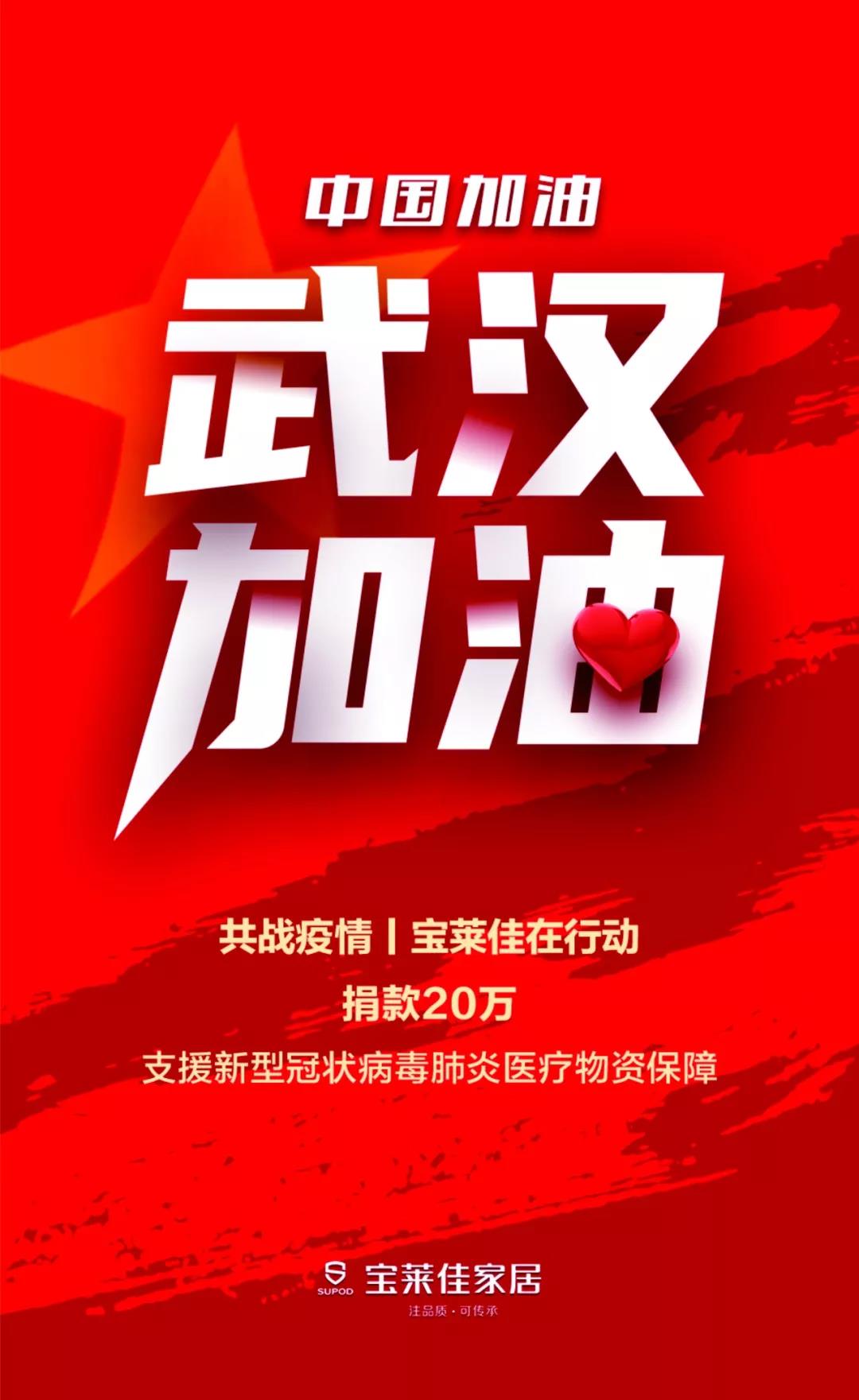 共战疫情,宝莱佳在行动,向武汉疫区捐款20万 ! 日期:2020-02-08 栏目:今日头条 浏览:次 2020年, 一个特殊的“春节”, 一场突如其来的灾难, 一个亿万同胞众志成城的战役。 当前, 新型冠状病毒感染的肺炎疫情防控工作, 正处于关键时刻, 前方急切的呼声: 口罩告急!护目镜告急!防护服告急! 成都宝莱佳家居积极响应, 向武汉市红十字会捐款人民币20万元, 为战胜疫情、为前方医疗物资保障, 奉献一份绵薄之力。 并向抗战一线的医护人员致以崇高敬意! 黑暗多让人心惊胆战, 光明就多令人热泪盈眶。 中华儿女坚强的意志让我们团结一致, 隔离病毒,不隔离爱, 我们齐心协力,共战疫情! 武汉加油!中国加油! 上一篇:四川出台13条政策应对疫情,缓解中小企业生产经营困难! 下一篇:减税、降本、补贴,成都发布20条政策措施,稳定经济运行! 内容版权声明:除非注明,否则皆为本站原创文章。 转载注明出处:http://www.jiajuzhuliu.com/article/toutiao/643.html 相关推荐 2026-01-23150天后,来「北京家居设计周」赴一场空 2026-01-222WMF2026定档9月5–8日:以“智造新平衡·木 2026-01-183阳光林森2026“定制+成品+同城营销”新战 2026-01-174得一家居2026商务峰会圆满举办,破局存量 2026-01-075好风景2026营销战略发布会暨新品盛典圆满