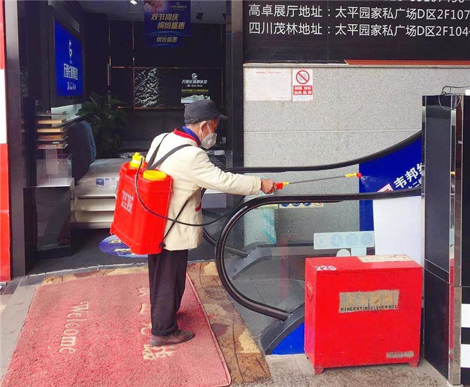 商场各区域每天不少于两次消杀防疫,全方位无死角做好防疫。物资组配备充足的各种消毒清洗物资,确保商场的安全经营环境。