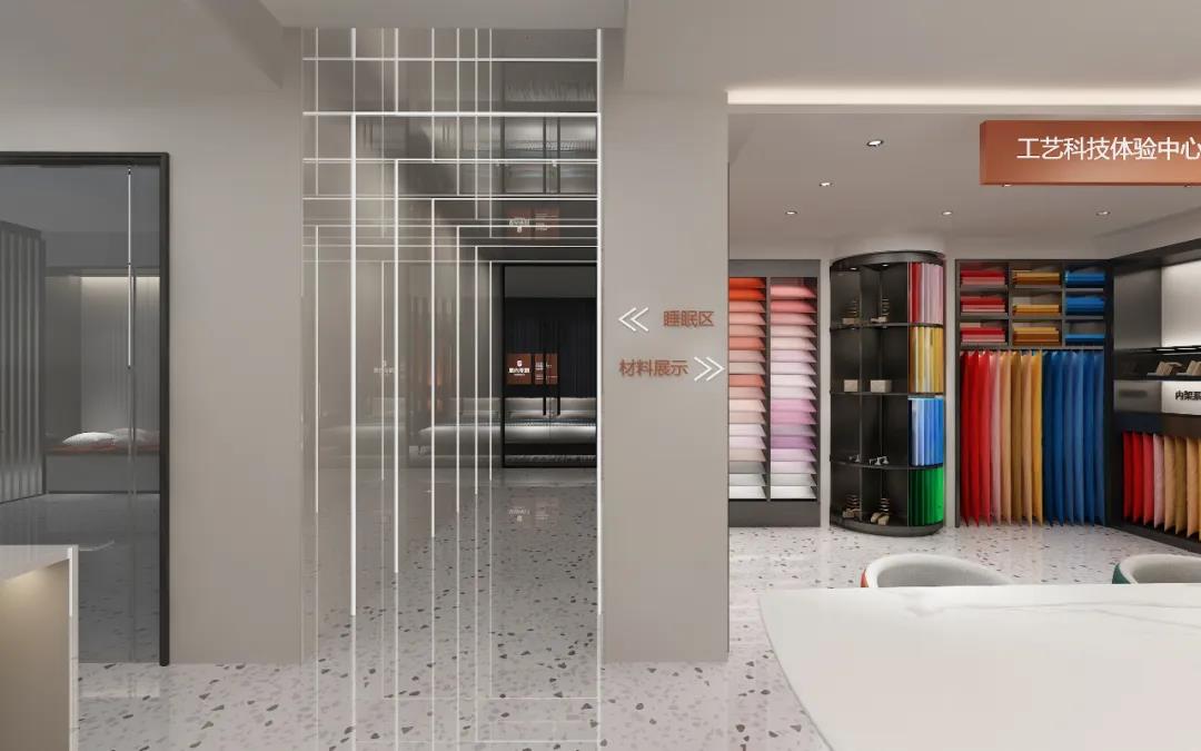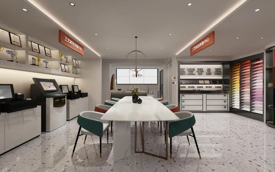 首创打造科技体验店,作为可复制的模式首发,全新升级的VI,统一形象和风格,在格局上更加注重凸显企业文化的融入与表达,结合思肯家居自主研发的智能销售设备,分区域展示品牌、质量、服务、规模等,通过功能性演示、细化产品展示、配套设计等,使产品展示更加多样化、视觉冲突性更强。