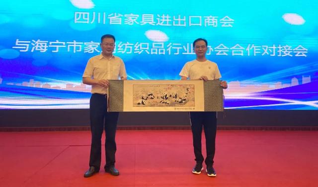 海宁市家用纺织品行业协会会长曹咬强;海宁市家用纺织品行业协会副会长、沙发布专业委员会主任沈建春等相关领导和企业出席对接会,曹会长在对接会上表示,今后双方将强强携手,建立双方不定期的互访交流的活动机制,建立两地对接联系人,推动双方今后更为紧密的互访交流活动。