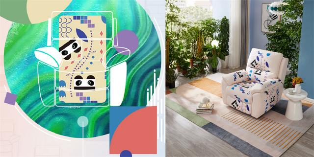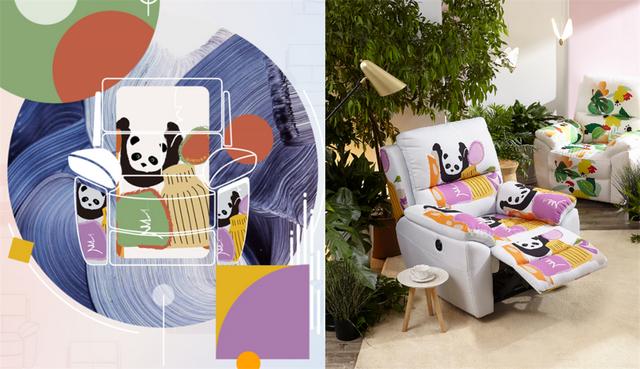 该结合了设计师的先锋设计理念以及全友家居功能沙发的高品质,将大自然、熊猫和建筑物作为灵感,设计出三款“潮趣”十足的沙发纹样,大胆的色彩碰撞、独特的图案拼接,令纯色功能沙发焕然一新。