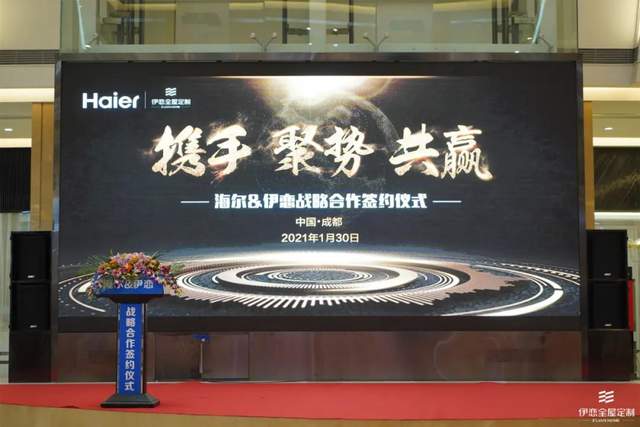 1月30日,伊恋全屋定制与海尔战略合作签约仪式在成都市成华区富森美家居隆重举行。伊恋全屋定制董事长谢宏伟,海尔智家四川分公司总经理崔振,出席了签约仪式,共同达成了这一重要合作。