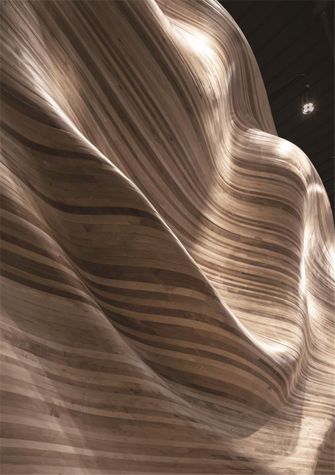 回忆起当时的创作灵感,他描绘了自己看到工匠在锯木时,木花飞旋在空中,在阳光下舞蹈。木花的形态让杜柏均意识到,木片的卷曲可以呈现轻盈的质感,一改我们平时对木材的敦厚印象。