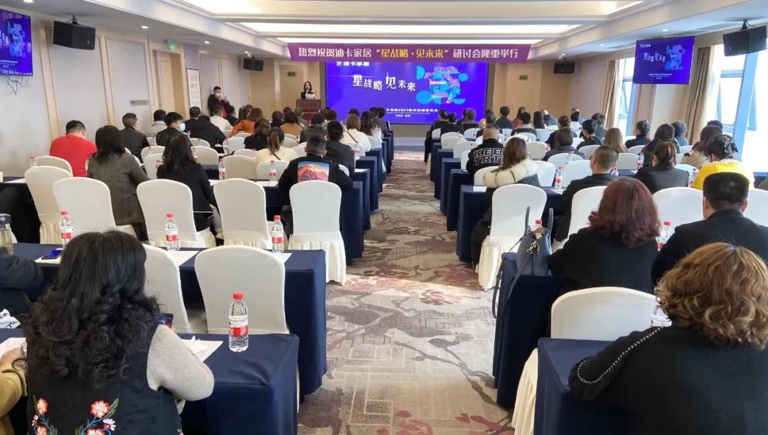 3月5日,中国家具行业软体星锐品牌迪卡家居“星战略·见未来”研讨会在成都隆重举行!迪卡家居总经理胡琼玲、副总经理潘倩、营销总监刘真明、迪卡家居商学院院长庞菲娅、四川省家具进出口商会相关领导以及来自全国的迪卡家居经销商家人们出席此次研讨会,共商迪卡家居终端盈利之道,共创迪卡家居新未来。
